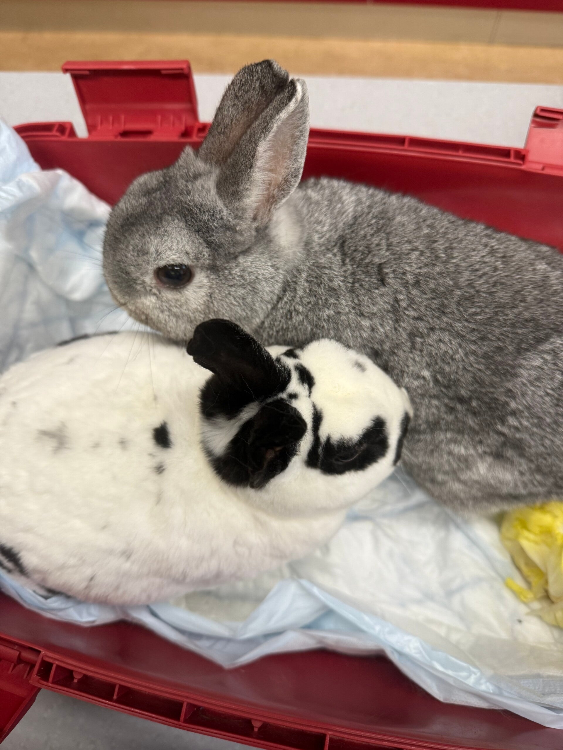 Da Karlchen seine Belle verlor und beide Kaninchen einsam waren, entschlossen wir uns Flöckchen zu adoptieren.